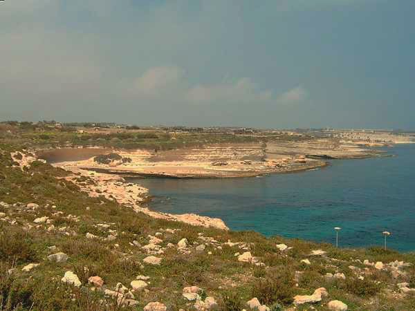 Here we turned right and followed the road towards the lighthouse at Delimara Point. Along this route are excellent views of Marsaxlokk Bay, but unfortunately the overall beauty is interrupted by the coastal industrialization, particularly the large port to the west of Marsaxlokk and the chimney of the Delimara Power Station which was to dominate many of our views for the next hour or so.