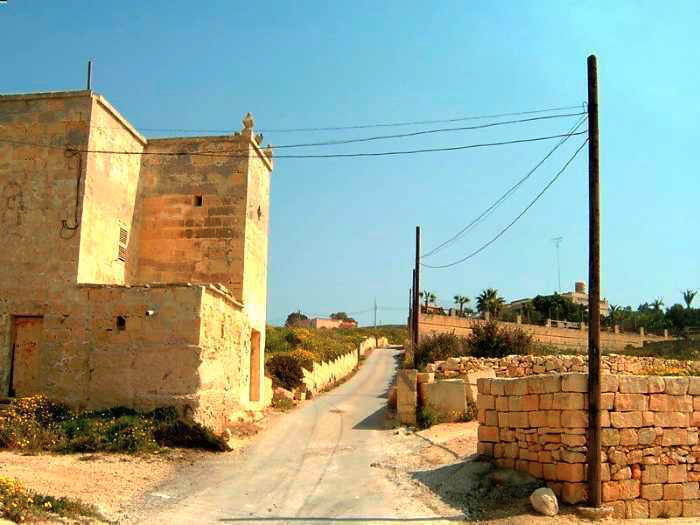 Soon the coastal road went inland and then came to a junction. Although the signpost indicated "Delimara Point" to the left we went right and walked south along the road which would ultimately have taken us to the Delimara Power Station. However, as we approached the sea once more, and a comparatively new sea wall, we took a steep track on our left. This track, which provides access to a number of houses on the hillside either side of it, became narrower and more broken up as we walked up it. Just as we thought our route would vanish all together the track turned left, in a few yards it turned right, and then widened before it reached its junction with the main road – a very narrow main road – between Marsaxlokk and Delimara Point.