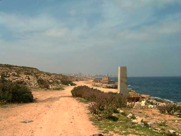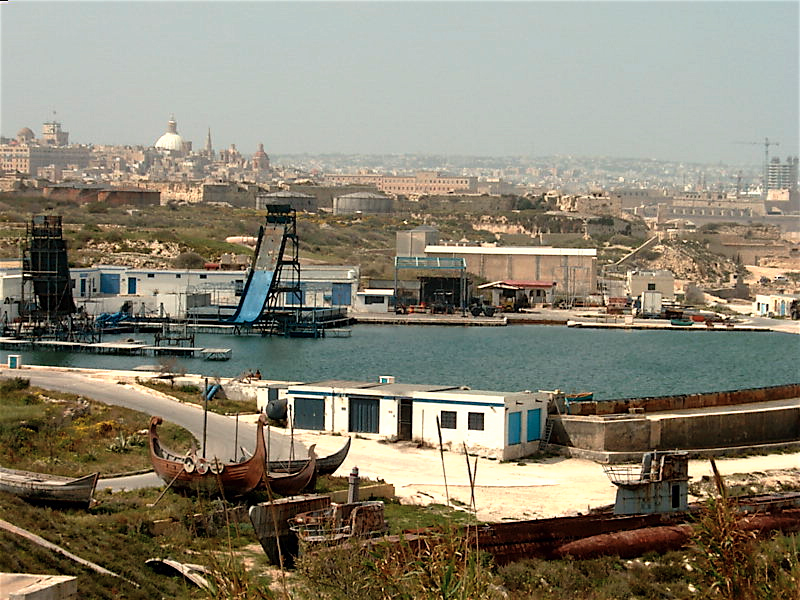 The track we followed went up hill and we could see part of the Malta Film Studios on our right – namely two big “ponds” for doing sea/water scenes on, and in. I understand this was the location for many of the watery scenes in the film Titanic. We then came to a large car park with the Fort St Rocco Pleasure Park on our left, and soon after this the crossroads by the Mediterranean Film Studios was reached. Here our route was right and within about 100 yards, at a three way junction we turned left. However, if you want to go to Fort Rinella, noted for its big gun, you should turn right here and follow the signs.