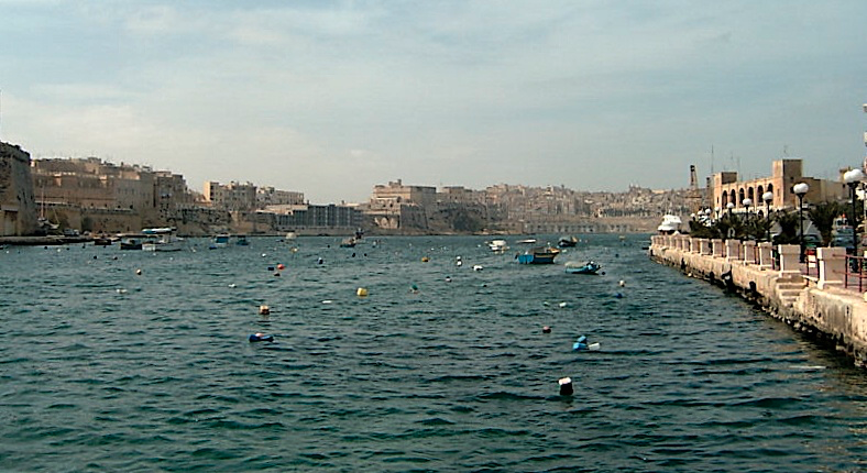 The Grand Harbour and part of one of the bastions of Senglia, which is located to the west of Vittoriosa.