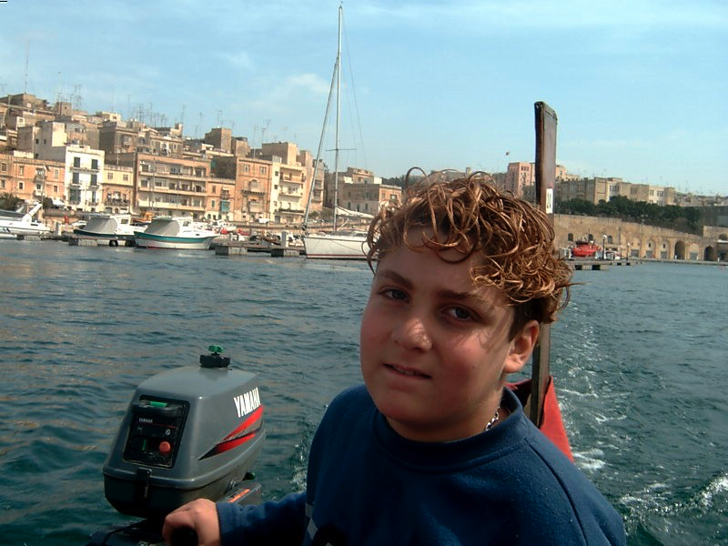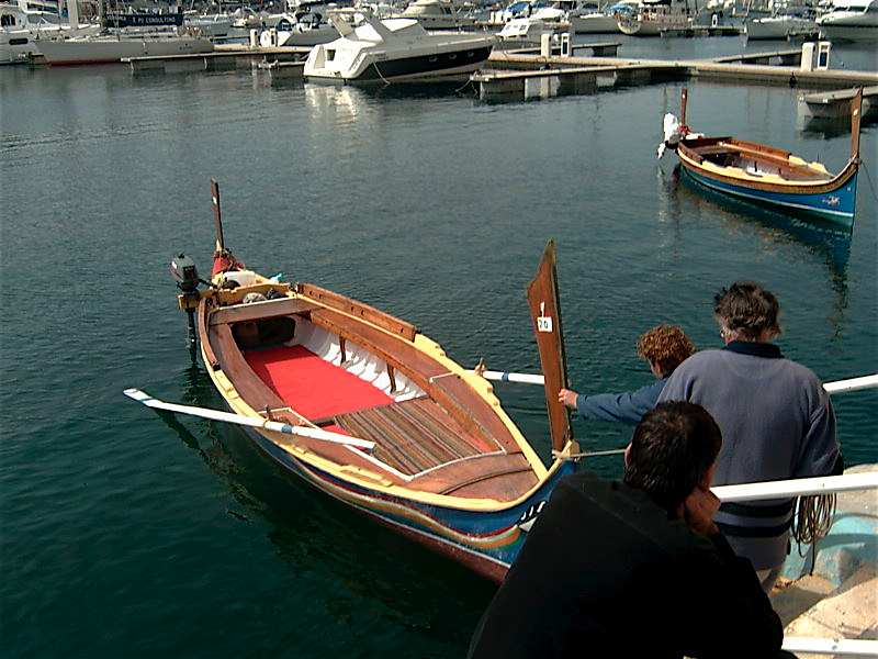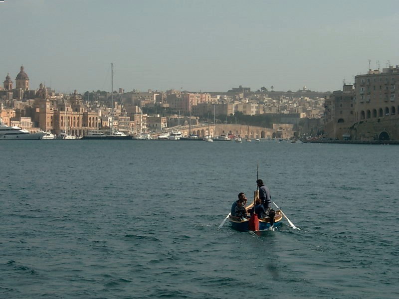 The Maltese Authorities are putting a lot of effort, time and money into improving the Three Cities and the flagship seems to be Vittoriosa. It is beginning to develop an impressive marina but, like Kalkara, and its harbour, is still generally tourist free, at least compared to the likes of Valletta, Sliema and St Julians. However, being tourist free meant we might have difficulty finding a vessel to take us across the Grand Harbour. But no. We were in luck. Just as we approached the Maritime Museum a suntanned local asked if we wanted a trip around the Grand Harbour. I said “No thanks, but how much would it be to get us to Valletta?” I was surprised when he said he would get us there for one Maltese Lira each. As a Maltese Lira is only a little more than £1.50 I thought this was a good price and said I would be back shortly, when we had had a little look round the harbour. Anne was a bit apprehensive. It seemed a very small boat to cross such a big harbour. Anne’s not a very good swimmer and I think she was unsure of the boat’s seaworthiness. However, she did agree to use this “ferry service” and so we joined a man and his two children who were going to have a trip around the harbour.